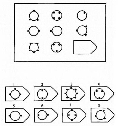 Показатели верхней части круга (1,2,8) соответствуют со