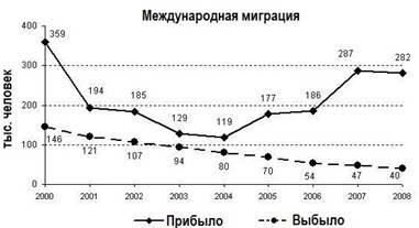 В 2007 г. численность населения Чувашской Республики сократилась на 3672 человека. За счет естественной убыли произошло сокращение на 3807 человек. Миграционный прирост населения составил –3672 – (– 3807) = 135 человек.