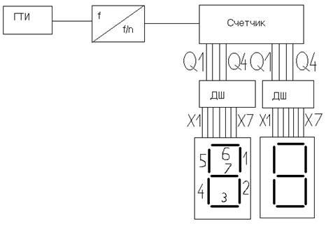 В синтезируемом ДУ дешифратор расшифровывает значение выдаваемой в каждом состоянии счетной схемы кодовой комбинации, преобразуя ее в код, отображаемый на индикаторе в виде шестнадцатиричного числа.
