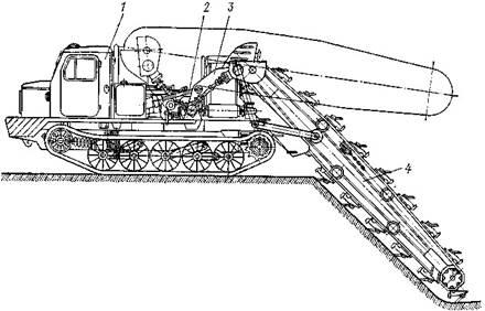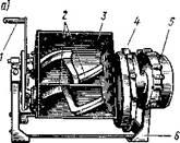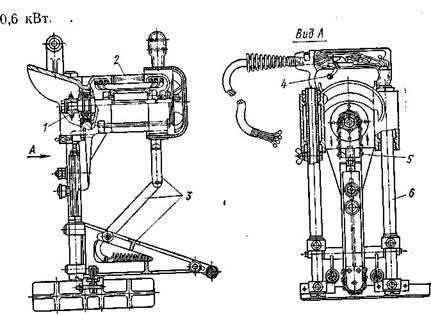 (обычно два). Барабан является одновременно обращенным ротором электродвигателя. Статор электродвигателя установлен на валу, закрепленном в боковых крышках корпуса. Кроме ножей на барабане закреплена крыльчатка — вентилятор для отбрасывания стружки в сторону. Ходовая часть машины состоит из одного переднего / и двух задних роликов 4.