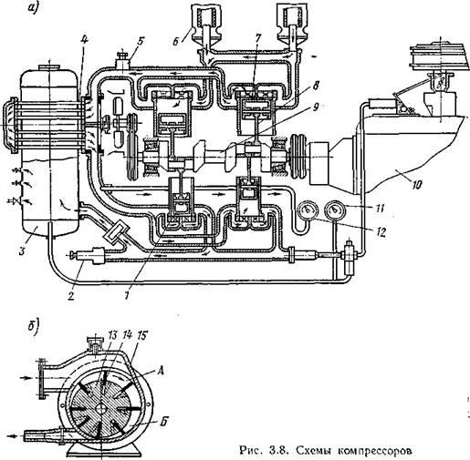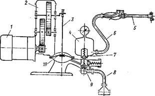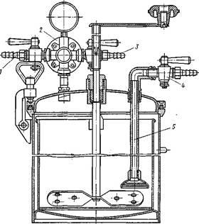 для подачи сжатого воздуха, крана 5для соединения бачка с атмосферой и манометра 5.