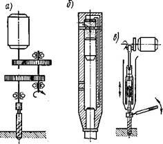 осуществляется от электродвигателя / через зубчатый редуктор 2