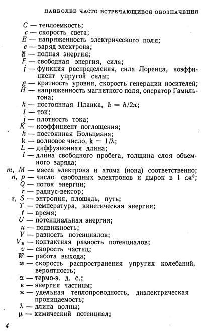 В первой главе эти вопросы рассмотрены в качественной форме, а в последующих дается количественный анализ, но при этом везде делается упор на физическую сущность явлений; необходимые для понимания этого материала сведения из теоретической физики (квантовой механики, статистики и термодинамики) приводятся в тексте попутно с основным материалом. Вторая глава посвящена описанию основных свойств кристаллов: симметрии, характера химической связи, дефектов, тепловых колебаний и теплоемкости. В третьей главе дается представление об электронной теории кристаллов (предпосылки введения адиабатического и одноэлектронного приближения, методы анализа и особенности зонной структуры полупроводников). Статистике электронов в полупроводниках посвящена четвертая глава, в которой также приведены некоторые положения термодинамики.