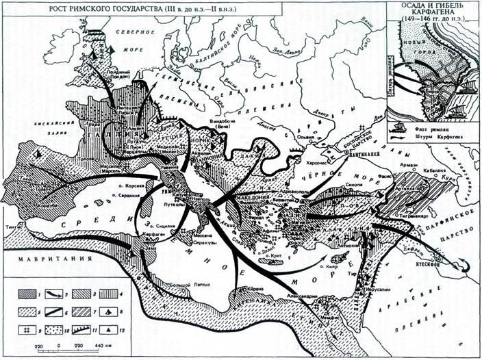 взять Карфаген. Шесть дней и ночей шли бои на улицах, каждый многоэтажный дом стал крепостью. Озверевшие воины никого не щадили. Оставшиеся в живых жители были проданы в рабство, а сам город — снесён с лица земли, и место, на котором он стоял, предано проклятью. Территории, принадлежавшие Карфагену, были превращены в римские провинции. Рим остался единственным и полновластным хозяином всего Западного Средиземноморья и уже уверенно хозяйничал в его восточной части.