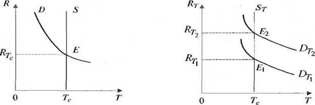 При фиксированной величине предложения земли в зависимости от спроса всегда найдется такая величина рентной оценки, которая уравновесит интересы продавца (землевладельца) и покупателя (арендатора) услуг земли. Это относится ко всем участникам рынка земли. Если цена окажется на уровне выше равновесного, то фирмы будут предъявлять на землю меньший спрос, чем предложение землевладельцев; в результате некоторые из них не смогут сдать землю, и вынуждены будут понизить цену. Если же цена будет ниже равновесной, то спрос со стороны арендаторов будет превышать предложение и землевладельцы повысят цену; в результате цена установится на равновесном уровне (RTe), при котором спрос на землю будет соответствовать ее предложению (Те). В равновесном состоянии доход землевладельцев будет определяться произведением арендной платы на количество земли (рис. 3). Этот доход не зависит от землевладельца, т.е. имеет характер чистой экономической ренты.