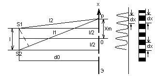 – расстояние от прямой, соединяющей источники, до экрана, на котором наблюдается интерференционная картина ( l<<d0