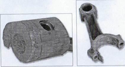 Рис. 1.4. Разрушение поршня дизеля при Рис. 1.5. Деформация шату- темпсратурном разупрочнении на при перегреве нижней го- ловки