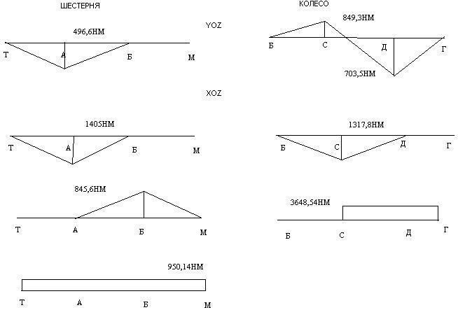 Наиболее опасным сечением для вала шестерни будет сечение А, а для вала колеса сечение С.