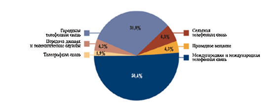 Несмотря на наличие конкуренции в 2001 году сохранились значительные данных и телематических служб – 153,05 и вырос удельный вес их в сравнении с 2000 годом с 3,4% до 4,1 в общей сумме доходов.
