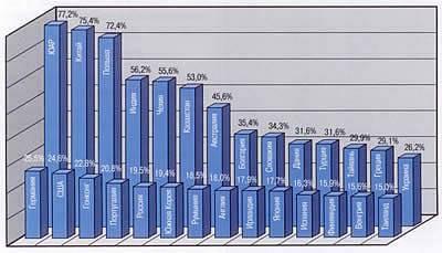 Рис. 4. Доля вугілля в енергетиці країни в 1997 р.