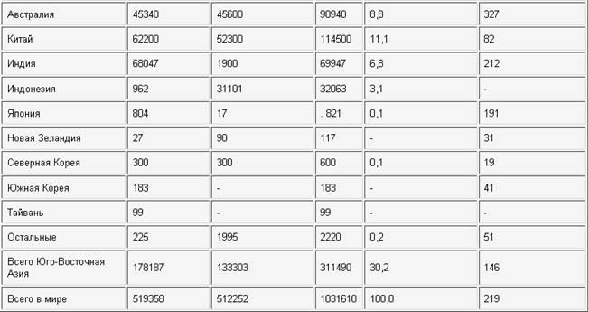 Основними імпортерами виступають країни Західної Європи (близько 160 млн.т) і АТР (більше 200 млн.т, у т.ч. Японія - 130 млн.т, Південна Корея -- близько 50 млн.т і Тайвань - близько 20 млн.т).