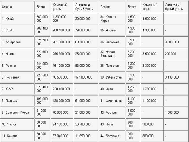 Більше 80% вугільних запасів зосереджено в Північній Америці, Азіатсько-Тихоокеанському регіоні і країнах СНД. При цьому дев'ята частина світових запасів вугілля зосереджена в Китаї, шоста частина - в Росії. Запаси вугілля в Казахстані складають 35,8 млрд. т. або 3,6% світових запасів.