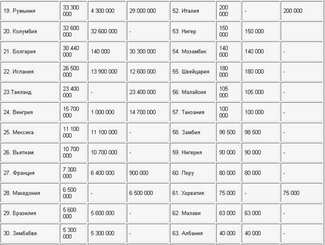 Мал. 3. Доля країн-експортерів в експорті вугілля в 1997 р. (млн.т)