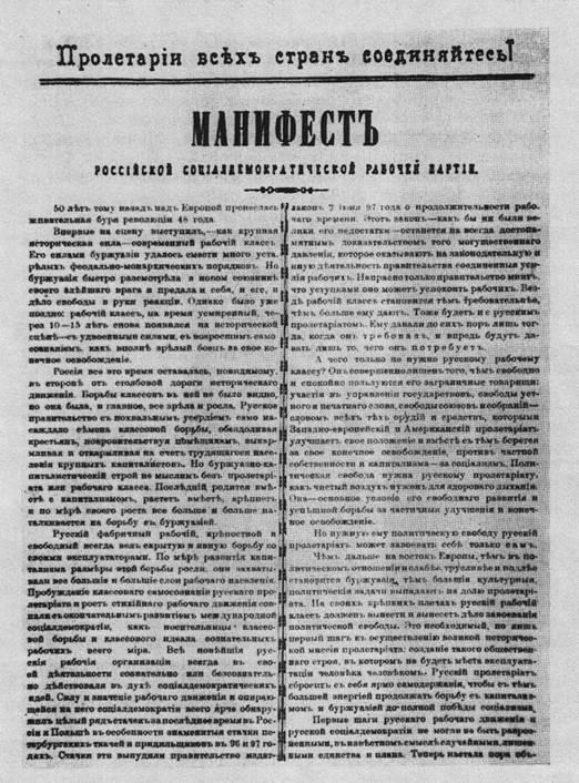 Для его написания они привлекли П.Б. Струве. Хотя Струве был далек от революционного марксизма, в «Манифесте РСДРП» он не мог провести свои реформистские взгляды. В последствии он всячески отмежевался от Манифеста.