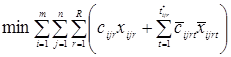 де - час планування; - час руху вагону від станції дислокації до станції навантаження, включаючи час навантаження; - час початку заборони; - час закінчення заборони; - ознака напряму вантажу в країну-власницю вагону. =1, якщо напрям перевезення припустимий, =0, якщо напрям перевезення не припустимий; - величина штрафу за навантаження при терміновому поверненні.