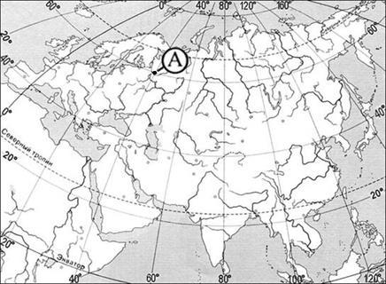 Какие географические координаты имеет точка, обозначенная на карте Евразии буквой А?
