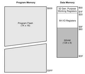 · оперативний запам'ятовуючий пристрій статичного типу для збереження даних (SRAM), який містить 1 Кбайт вбудованої пам’яті;