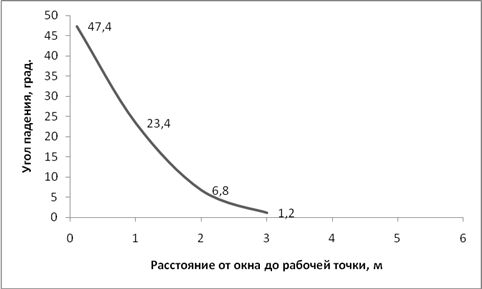 Рисунок 2 – Зависимость величины угла падения от расстояния до окна