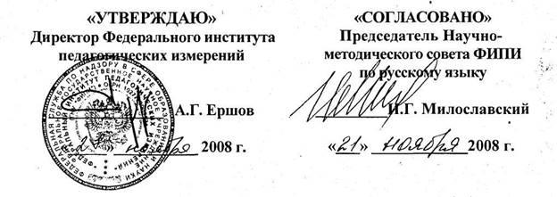 общеобразовательных учреждений 2009 года (в новой форме) по РУССКОМУ ЯЗЫКУ