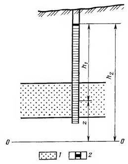 до середины пласта и глубину пьезометрического уровня от устья скважины h1
