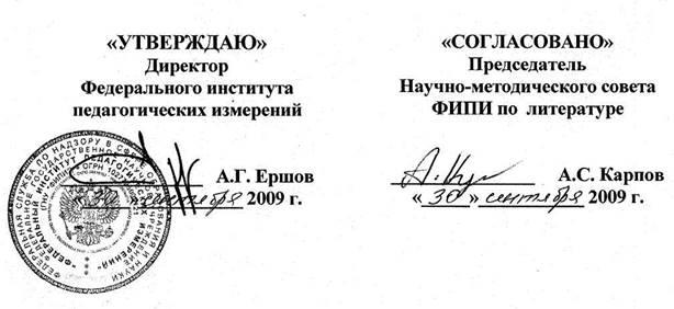 Демонстрационный вариант ЕГЭ 2010 г. ЛИТЕРАТУРА, 11 КЛАСС.