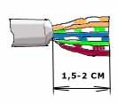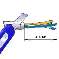 В случае отсутствия обжимного инструмента можно провести монтаж коннекторов RJ-45 с помощью тонкой отвертки, выполняя операцию последовательно по элементам. Но действия в этом случае требуют навыков и осторожности, и вряд ли это можно порекомендовать неподготовленным людям (есть фирмы, где можно приобрести уже готовые кабели по вашим размерам и в соответствии с вашей схемой подключения). В случае использования коаксиального кабеля производится удаление участка внешней изоляции, экранирующей оплетки, и внутренней изоляции: