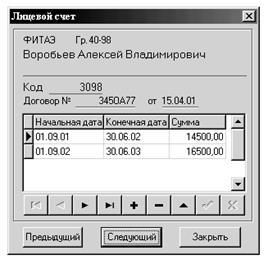 В институте, в связи с ограниченным приемом, наряду с бесплатной формой обучения существует также и обучение на платной основе. Студенты, обучающиеся в ВУЗе на платной основе, заключают с институтом договор на обучение. По каждому студенту, с которым заключен договор, ведется лицевой счет, где отражаются все начисления и оплаты за обучение.