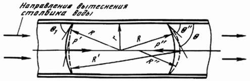 Под действием капиллярных сил столбик нефти будет стремиться принять шарообразную форму, оказывая при это давление Р на пленку воды между стенками капилляра и столбиком нефти: