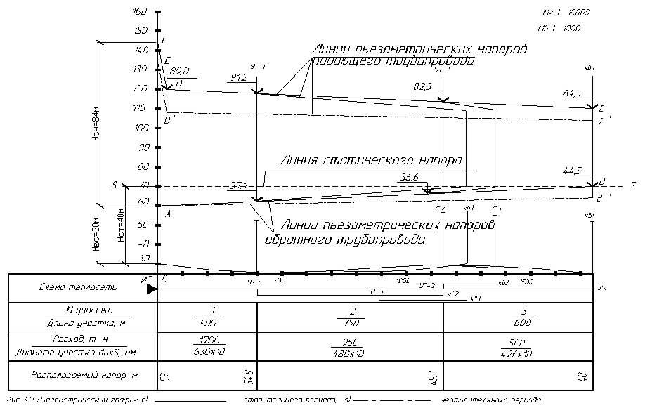 - построение пьезометрического графика тепловых сетей с проработкой экстремальных режимов;