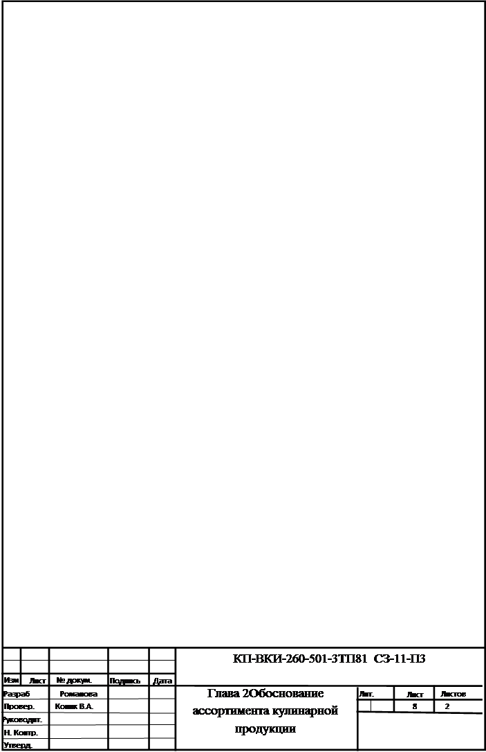 Глава №2 Обоснование ассортимента кулинарной продукции, вырабатываемой на предприятии