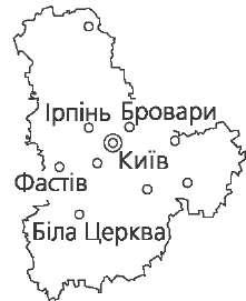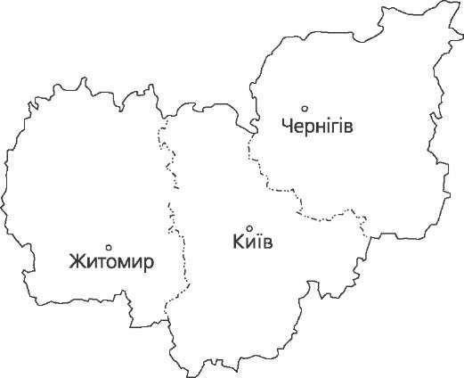 Корисні копалини: нафта та природний газ (Передкарпатська нафтогазо- носна область), буре вугілля, озокерит, великі запаси сірки, кам'яної та ка- лійної солей. Є гіпс, сланці, фосфорити, різні будівельні матеріали, джерела мінеральних вод. Клімат помірно континентальний. В рівнинній і середній частинах об- ласті зима м'яка, літо тепле, середня температура січня -4.-4,5 °С, липня + 18... + 19,5 °С. У горах клімат холодніший. Середня температура січня стано- вить -6 °С, липня +16 °С. Опадів від 600—800 мм у Передкарпатті до 1400 мм у горах. Річки області належать до басейнів Дністра і Пруту. Притоки Дністра — Свіча, Лімниця, Луква, Бистриця, Свір, Гнила Липа; притоки Пруту — Чере- мош, Рибниця, Турка та ін. Гірські озера — Лебедине, Несамовите та ін. У Придністров'ї переважають опідзолені чорноземи, темно-сірі, сірі ґрун- ти. У Передкарпатті — дерново-підзолисті та дернові, в горах — бурі лісові, гірсько-лучні. Переважаючим типом рослинності є ліси. Ними вкрито від 30 % території на рівнині до 60 % — у горах. До висоти 800—1000 м ростуть листяні ліси, вище (1300—1500 м) — хвойні, на вершинах гір — субальпійські луки — по- лонини. На території області знаходяться Карпатський природний націо- нальний парк і заповідник Горгани. Київська область Розташована в північній частині Укра- їни, в басейні середньої течії Дніпра. Пло- ща 28,9 тис. км2. Поверхня області рівнинно-горбиста. Північна частина лежить у межах По- ліської низовини, центральна і південно- західна — на Придніпровській височині, дуже розчленованій річковими долинами і балками. На сході в межі області захо- дить Придніпровська низовина. На корисні копалини область бідна. Є будівельні матеріали, каоліни, торф, буре вугілля, джерела мінеральних вод; на південному заході — запаси само- родного золота, алмазів, платиноїдів, титано-цирконієві руди. Клімат помірно континентальний, м'який. Середня температура січ- ня -5,8.-6,5 °С, липня +19,2... + 20,1 °С. Опадів 500-600 мм, найбільше у червні—липні. Дніпро — найбільша водна артерія області. Всі річки належать до його ба- сейну. Головні притоки Дніпра: Прип'ять, Уж, Тетерів, Ірпінь, Стугна, Красна, Рось, Десна, Трубіж. На території області — Київське і Канівське водосховища. На півночі найпоширеніші дерново-підзолисті, лучні та болотні ґрунти, в центральній та західній частинах — опідзолені чорноземи, темно-сірі та ясно-сірі лісові ґрунти, на півдні — глибокі малогумусні чорноземи. На Лі- вобережжі (в Лісостепу) трапляються чорноземи типові малогумусні, лучні солонцюваті, солончакові та ін. Внаслідок катастрофи на Чорнобильській АЕС в 1986 р. територія області зазнала забруднення радіоактивними елементами, особливо північна її частина.  44
