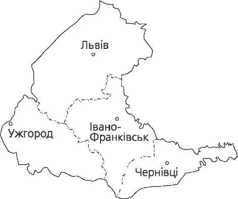 Житомирська область Розташована на півночі України. Пло- ща 29,9 тис. км2. Поверхня області — хвиляста рівнина. Північ області займає Поліська низовина, південь — Придніпровська височина, роз- членована густою мережею річкових долин і ярів. У межах Поліської низовини підно- ситься Словечансько-Овруцький кряж, складений кристалічними породами. З корисних копалин найважливіше значення мають будівельні матеріа- ли: граніти, лабрадорити, мармур, кварцити. Є каоліни, вогнетривкі глини, титанові руди, кварцові піски, самоцвіти (гранати, бурштин, топази, яшма тощо), торф, буре вугілля, радіоактивні мінеральні джерела та грязі. Клімат області помірно континентальний. Зима нехолодна, літо не- жарке, вологе. Середня температура січня -5,7 °С, липня +18,9 °C. Опадів 570—600 мм на рік, найбільше їх влітку. Річки належать до басейну Дніпра: Тетерів, Ірпінь, Здвиж, Уборть, Сло- вечна, Уж, Случ. Багато озер. Серед ґрунтів переважають дерново-підзолисті, болотяні та сірі лісові. На півдні є чорноземні ґрунти. Область лежить в зоні мішаних лісів, південна частина — в лісостеповій зоні. Лісами вкрито 28 % площі області. На території області багато об'єктів природно-заповідного фонду, в тому числі Поліський заповідник. Внаслідок катастрофи на Чорнобильській АЕС територія зазнала радіоактивного за - бруднення. Закарпатська область Розташована на заході України. Пло- ща 12,8 тис. км2. За характером рельєфу територія За- карпатської обла сті поділяється на дві частини: гірську (Українські Карпати) і рівнинну (Закарпатська низовина). На гори припадає близько 4/5 території. Гір- ські хребти Карпат витягнуті з північного заходу на південний схід. Закарпатська низовина має висоти 105—120 м з незначним похилом від гір до р. Тиси. В області є різні корисні копалини: кам'яна сіль, буре вугілля, ртутна руда, алуніти, золото, поліметалеві руди, туфи, доломіти, перліти, бентоні- тові глини та ін. Дуже багато джерел мінеральних вод. Клімат помірно континентальний. На низовині зима коротка, м'яка, температура січня -2...-3 °С, літо тепле, середня температура липня +19... +21 °С. В горах літо прохолодне, температура липня від +9 до +13 °С, зима тривала, холодна, температура січня від -5 до -9 °С. Опадів 642—1411 мм, залежно від висоти. Річки належать до басейну Тиси, притоки Дунаю. Найбільше озеро — Си- невир.  42