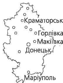 відроги Приазовської височини. Поверхня дуже порізана ярами, балками, долинами річок. Область багата на корисні копалини: великі поклади залізної руди Криворіжжя, манганової руди Нікопольського басейну; є поклади бокси- тів, нікелю, кобальту, золота, титану, кам'яного і бурого вугілля. Великі поклади гранітів, мармуру, каолінів, вогнетривких глин, вапняків, пісків тощо. Клімат помірно континентальний з жарким літом і порівняно холодною зимою. Пересічна температура січня -4,5...-6,5 °С, липня +21,5...+22,5 °С. Опадів 400—490 мм, переважно в теплий період року. Головна річка — Дніпро з притоками: Оріль, Самара з Вовчою, Мокра, Інгулець. У межах області розташовані Дніпродзержинське, Дніпровське і Каховське водосховища. Ґрунти: чорноземи звичайні та південні, трапляються лучно-чорноземні, дернові, піщані та ін. Область лежить у степовій зоні. Але в заплавах річок і в балках трапля- ються ліси. Найбільший об'єкт природно-заповідного фонду — Дніпровсько- Орільський заповідник. Донецька область Розташована в південно-східній части- ні України. На півдні омивається водами Азовського моря. Площа 26,5 тис. км2. Поверхня області — хвиляста рівни- на, розчленована численними річковими долинами, ярами і балками. Північно- східна частина — Донецька височина, захід — Придніпровська низовина, пів- день — Приазовська височина. Поширені в області й антропогенні форми рельєфу — терикони, кар'єри, провали. Найголовніший вид корисних копалин області — вугілля Донецького кам'яновугільного басейну. Є кам'яна сіль, доломіти, флюсові вапняки, вог- нетривкі глини, гіпс, мергель, будівельні матеріали, азбест, ртуть. Клімат помірно континентальний. Зима прохолодна, літо жарке. Середня температура січня -4.-7,8 °С, липня +20,8...+22,8 °С. Опадів 375—556 мм на рік, більшість в теплу пору року. З несприятливих кліматичних явищ найнебезпечніші пилові (чорні) бурі. Річки області належать до басейнів Сіверського Дінця, Дніпра та Азов- ського моря. Найбільша річка — Сіверський Донець, що має притоки: Ка- зенний Торець, Бахмут, Лугань. Озер мало, більше штучних водойм. Канал Сіверський Донець — Донбас. Серед ґрунтів області переважають середньо- і малогумусні чорноземи звичайні. В долинах річок поширені лучно-чорноземні й лучні ґрунти. На півдні трапляються солончаки і солонці. Область лежить у межах степо- вої зони. Природна степова рослинність збереглася тільки в заповідних територіях (Український степовий заповідник, національний природний парк «Святі гори»). Ліси займають 4,8 % території, вони трапляються в заплавах річок і в балках.  41