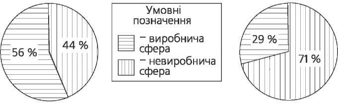розділ ііі. господарство Загальна характеристика господарства України Економіка (господарство) — найважливіша сфера суспільного жит- тя, у якій на основі використання різноманітних ресурсів здійснюється виробництво, обмін, розподіл та споживання продуктів людської ді- яльності. Галузева структура господарства — це співвідношення і зв'язки між окремими його галузями (поділ господарства країни на окремі галузі). Га- лузь господарства — це сукупність підприємств або установ, що виробляють однорідну продукцію або надають однорідні послуги.  Народне господарство охоплює галузі матеріального виробництва — виробни- чу сферу і галузі невиробничої сфери. Головна галузь виробничої сфери — про- мисловість. Вона поділяється на гірничодобувну, що забезпечує господарство мінеральною сировиною; важку (електроенергетика, машинобудування, хі- мічна, поліграфічна і лісова галузі); легку і харчову, що виробляють предмети споживання. Важливими ланками виробничої сфери є сільське господарство, будівництво, транспорт, зв'язок. Частка зайнятих у виробничій сфері становить 70 %. До галузей невиробничої сфери належать житлове і комунальне господар- ство, побутове обслуговування, охорона здоров'я, наука, освіта, культура, спорт. Частка зайнятих у невиробничій сфері становить 30 %. За єдністю продукції, що випускається, галузі господарства поєднуються в міжгалузеві комплекси. Наприклад, ПЕК, машинобудівний, соціальний, транспортний, будівельний, АПК тощо. Підприємства кожної галузі господарства мають свою географічну адресу, свої особливості розташування. Вони розміщуються нерівномірно по терито- рії країни, концентруючись в окремих центрах, районах, областях. Таким чином, господарство країни має певну територіальну структуру — склад і співвідношення виробництв, особливості їхнього розташування в різних частинах країни та зв'язку між ними. 62