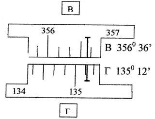 В теодолите Т30 отсчетное устройство выполнено в виде штрихового микроскопа(рис.2), позволяющего брать отсчеты с точностью 1'.