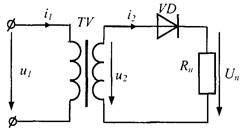 При этом в течение нечётных полупериодов ток протекает в цепи - вентиль VD