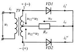 Причём в любой полупериод ток в цепи нагрузки протекает в одном и том же направлении.