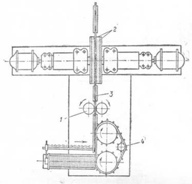 При обдирочном шлифовании наружной поверхности заготовки поршневых колец надевают на стальной ролик и прижимают к нему резиновыми роликами . При обдирочном шлифовании удаляют литейные уклоны и снимают корку толщиной 0,2 мм. Затем предварительно шлифуют торцы заготовок поршневых колец на специальном торцешлифовальном станке, схема работы которого приведена на (рис. 3).