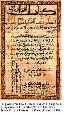 ("Книга Интеграции и Уравнения, " буквально "сокращение и сравнение"), был синтез индийской алгебры и греческой геометрии и имел самый глубокий эффект на развитие науки. Латинские переводы, резюме и комментарии были написаны в 12 столетии. Математический термин "алгебра"