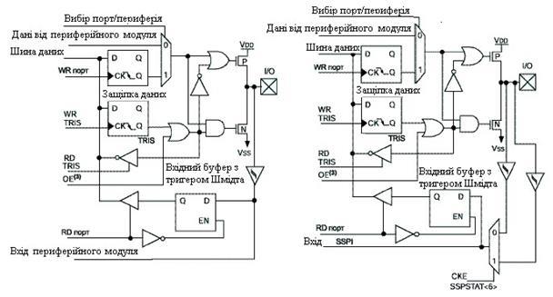 1. При виконанні операції "читання - модифікація - запис" з портом введення/виводу початкові значення прочитуються з виводів порту, а не з вихідних защіпок. Наприклад, якщо у вихідній защіпці було записана '1', а на відповідному виході низький рівень сигналу, то назад буде записано значення '0'.