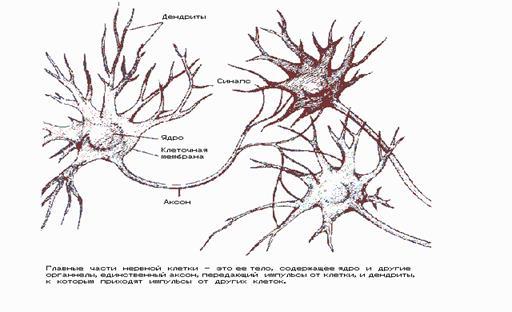 нейронов, связанных между собой. Каждый нейрон получает информацию через свои дендриты, а передает ее дальше только через единственных аксон, разветвляющийся на конце на тысячи синапсов