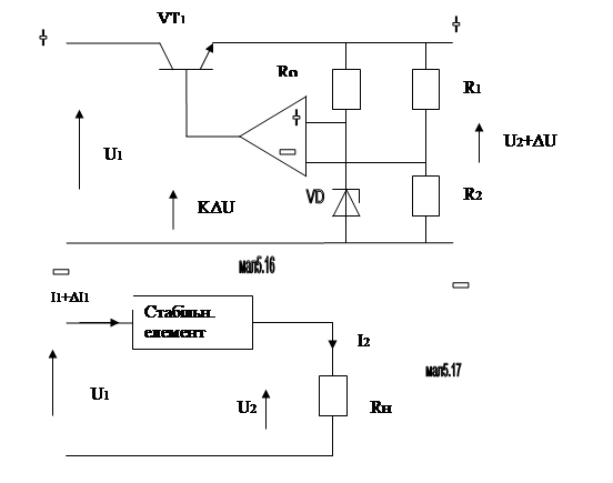 На малюнку 5.18 зображено типовий варіант стабілізатора з включеним навантаженням в цеп колектора.