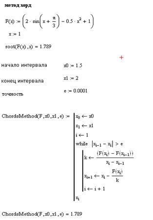 Идея метода состоит в том, что по двум точкам и построить прямую (то есть хорду, соединяющую две точки графика ) и взять в качестве следующего приближения абсциссу точки пересечения этой прямой с осью Ox