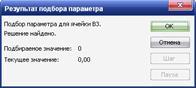 При клацанні на ОК програма підбирає параметр для комірки зі змінною перемінною, щоб значення цільової функції дорівнювалося нулю.