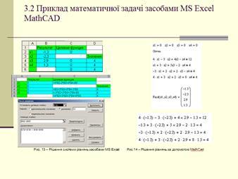 MathCad та MS Excel складає потужний математичний апарат для виконання найскладніших обчислень з використанням різноманітних функцій.