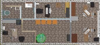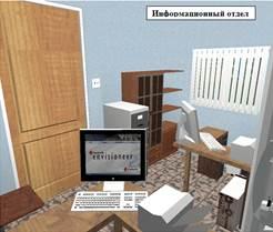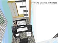 Проект офісу складається з 6 кімнат: хол, кімната головного редактора, інформаційний відділ, вбиральня, ванна кімната, приймальня.