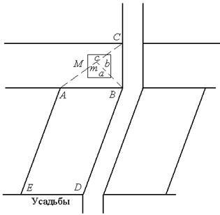 2) положение концов переносимых в натуру линий определяется промером между точками, которые обозначены на плане и надежно определяются в натуре (знаки, столбы, колья, вершины углов поворотов четко отображенных контуров ситуации).
