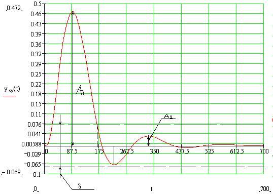 Используя данные таблицы 7 и рисунка 7, произведём оценку качества переходного процесса в замкнутой АСР по каналу F-Y.