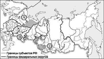 Какой из регионов, обозначенных буквами на карте России, имеет наименьшую