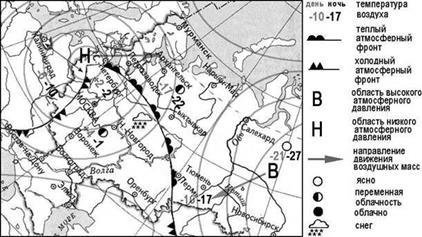 Задания 11–12 выполняются с использованием приведенной ниже карты погоды.